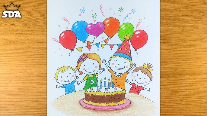 How To Draw Birthday Party Scene Youtube